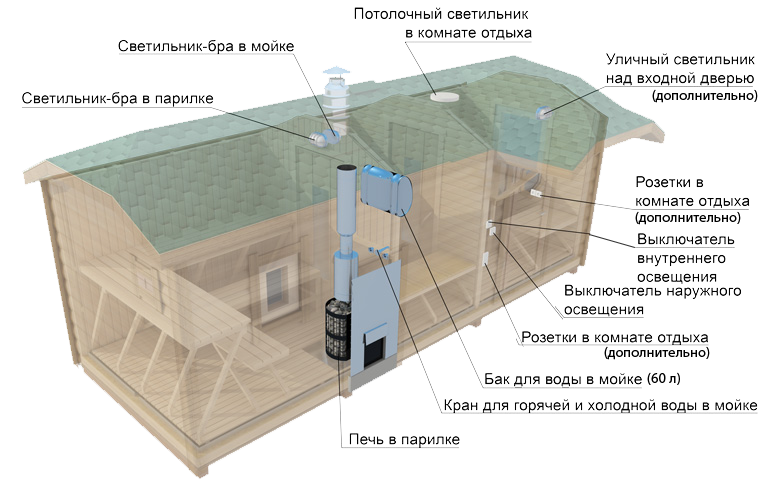 1. Первые сутки, после установки в баню не заходим, должен просохнуть герметик, которым обрабатывают полы.